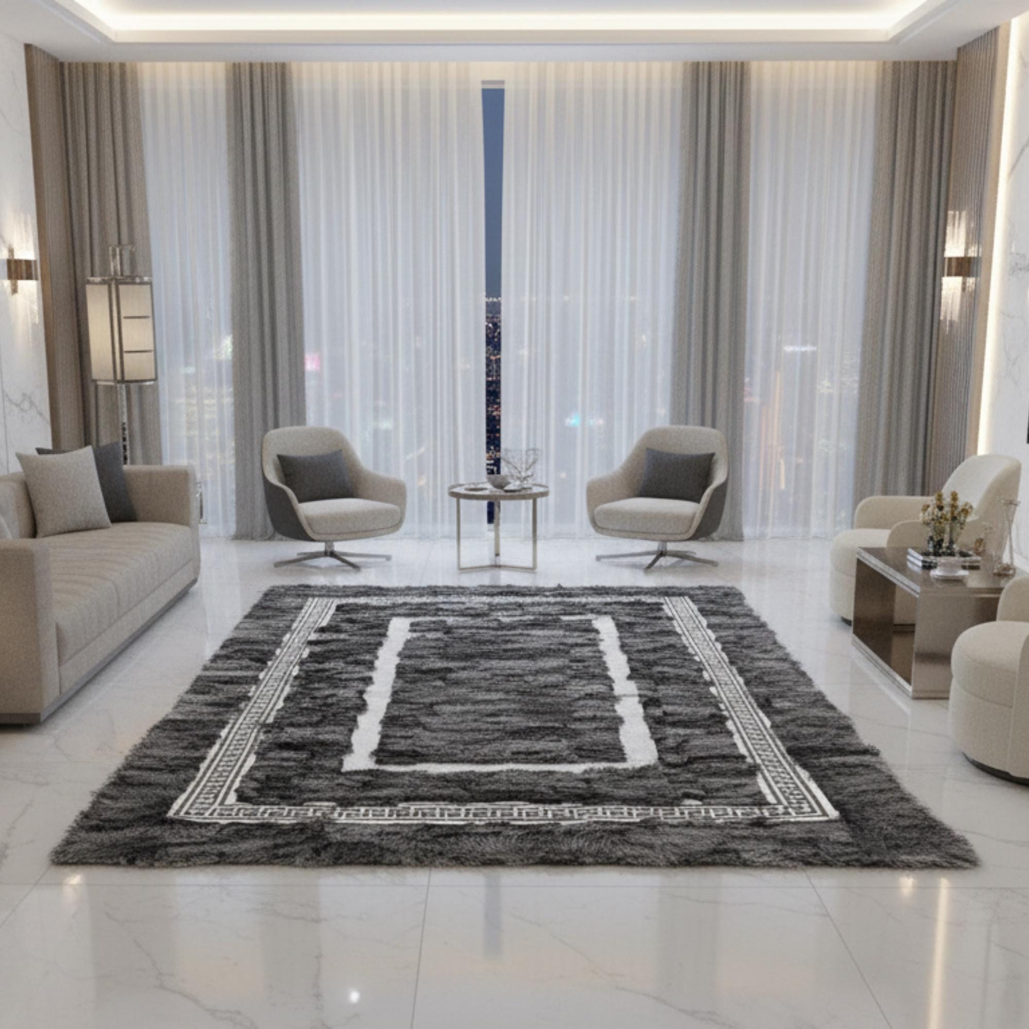 Alt yüzeyinde kullanılan kaymaz taban sayesinde halı zeminde sabit durur ve günlük kullanımda güvenli bir deneyim sunar. El yapımı olarak üretilen bu Toscana kürk halı, salon, oturma odası ve modern dekorasyona sahip yaşam alanlarında estetik bir tamamlayıcı olarak öne çıkar. İhtiyaca göre özel ölçü seçenekleriyle üretim yapılabilmektedir.