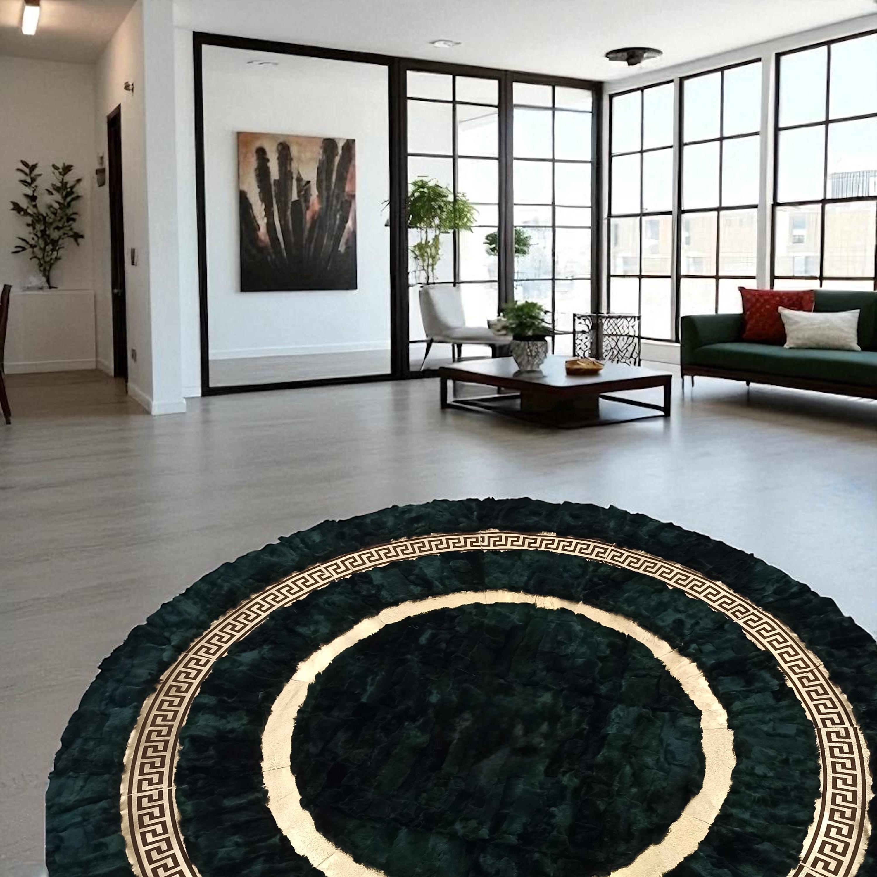 Altın Bordürlü Şık Yeşil Toskana Kürkü Hal - Lüks ve Şık Salon Halısı