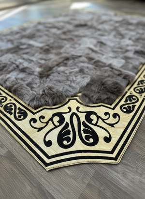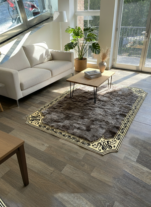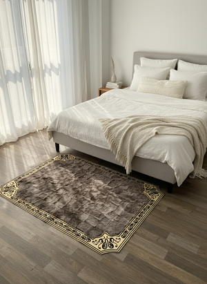 Kahverengi Toskana Halı – Altın Köşe Desenli, Doğal ve Yumuşak Doku, Kaymaz Taban – Özel Ölçü Seçenekleri
