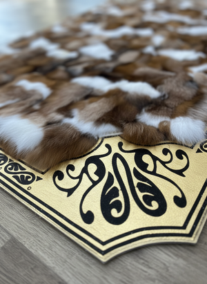 Doğal Tilki Kürkü Halı – Altın Köşe Detaylı, Yoğun ve Lüks Doku, Kaymaz Taban – Özel Ölçü Seçenekleri
