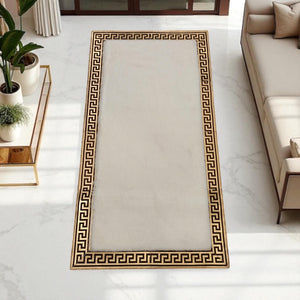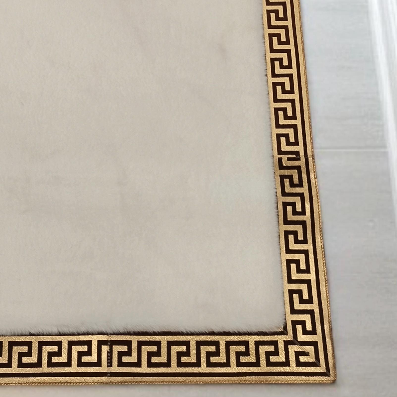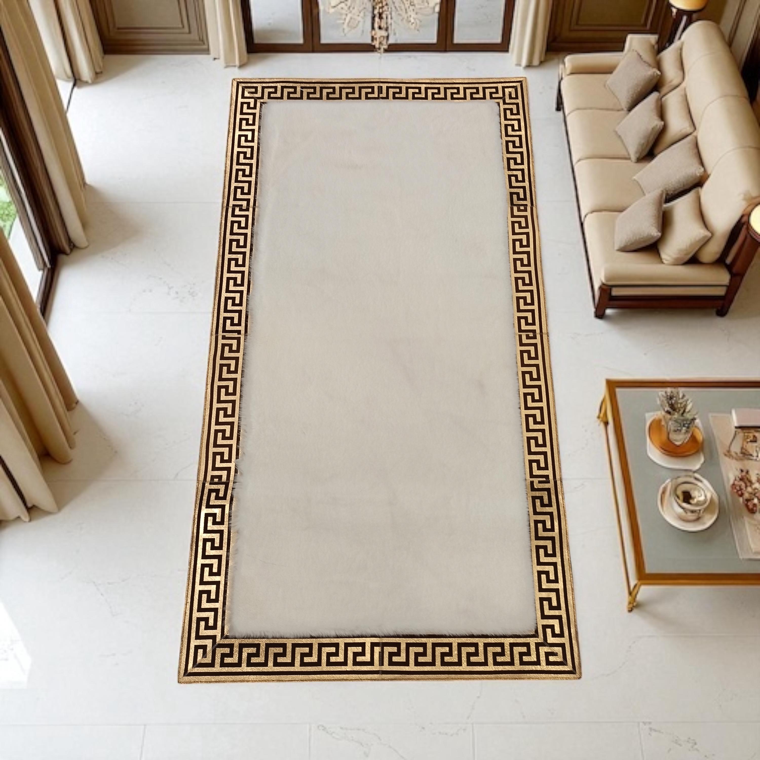 Altın Varaklı Beyaz Peluş Halı - Şık Antre Halısı