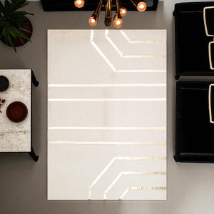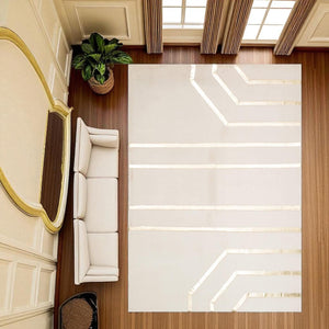 Krem Renk Modern Desenli Peluş Halı - Şık Salon Halısı