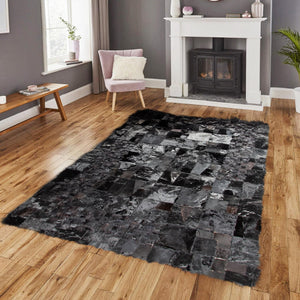 Parlak Siyah Dana Derisi Patchwork Halı