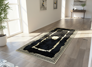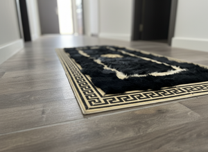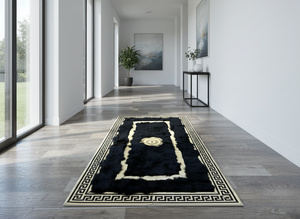 Siyah Toskana Halı – Altın Desenli, Doğal ve El İşçiliği, Kaymaz Tabanlı Lüks Tasarım – Özel Ölçü Seçenekleri