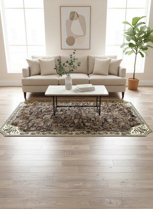 Kahverengi Toskana Halı – Altın Köşe Detaylı, Yoğun ve Doğal Doku, Kaymaz Taban – Özel Ölçü Seçenekleri