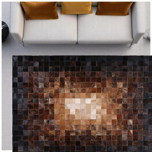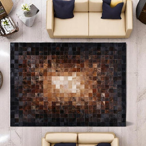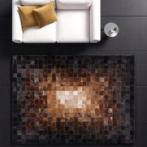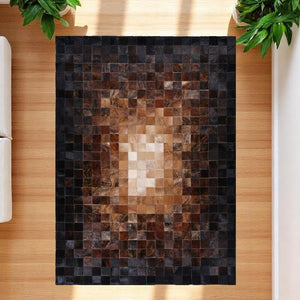 Doğal tonlara sahip bu dana derisi halı, doğal dokusu ve şık görünümüyle dikkat çeker.