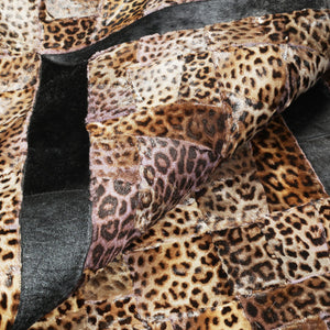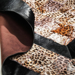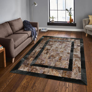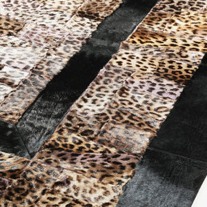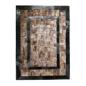 Siyah Kenarlı Leopar Desenli Dana Derisi Halı