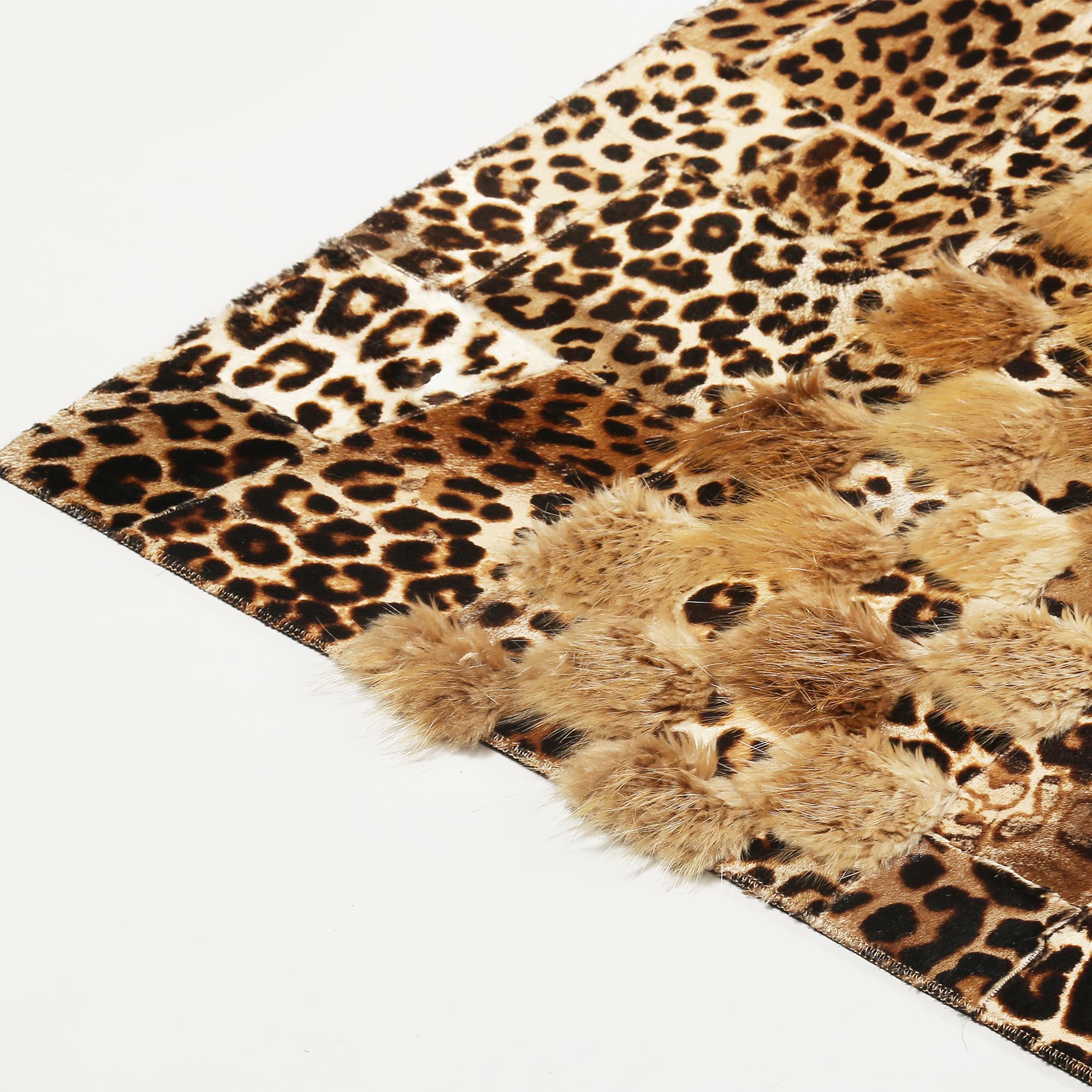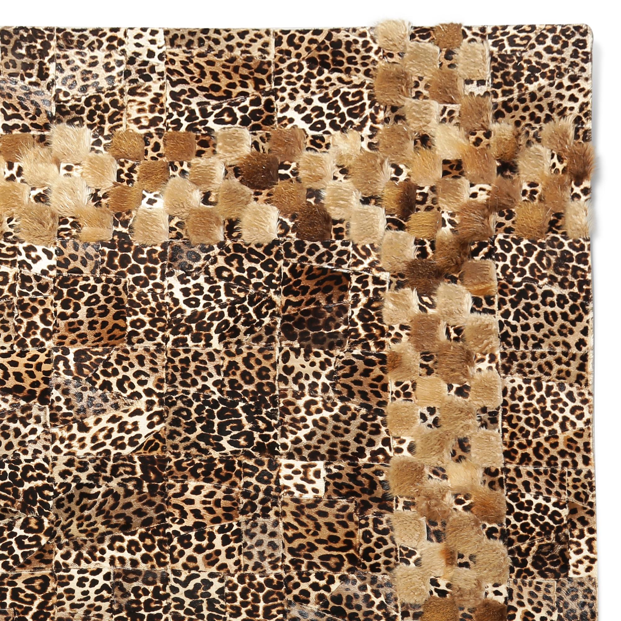Leopar Desenli Gerçek Kürk Patchwork Halı