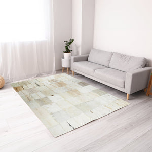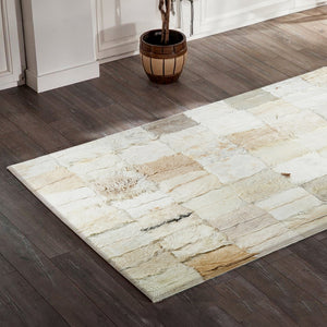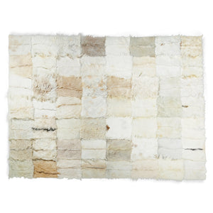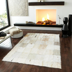 Krem ve Beyaz Tonlarında Doğal Görünümlü Gerçek Oğlak Derisi Lüks Salon Halısı