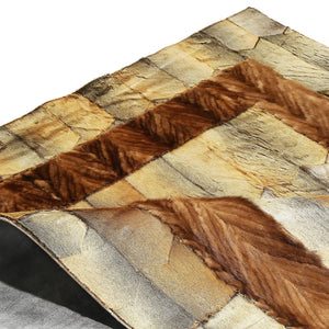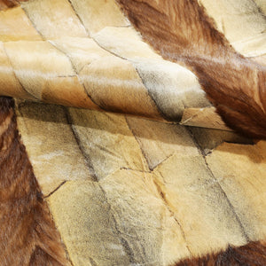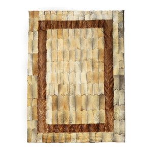 Açık kahverengi oğlak derisinden yapılmış bu halı, koyu çerçevesiyle kontrast bir görünüm sunar. Doğal ve dayanıklıdır.