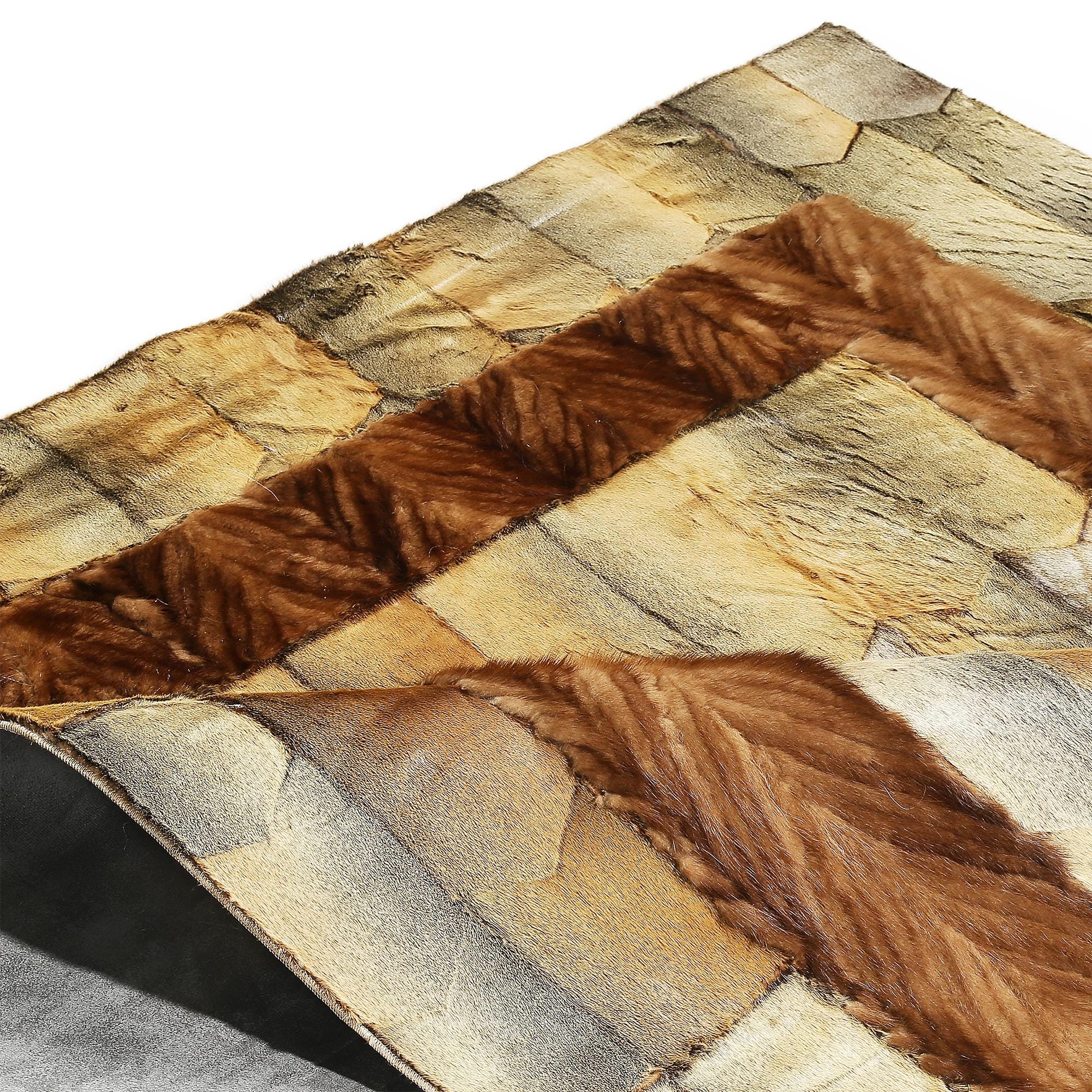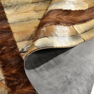 Koyu Kahve Çerçeveli Açık Kahverengi Oğlak Derisi Halı
