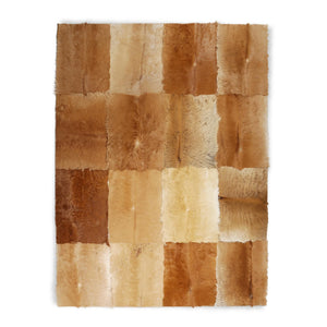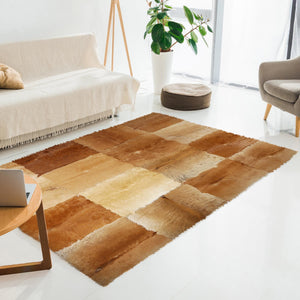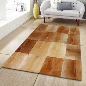Açık Kahverengi Doğal Dana Derisi Patchwork Halı – El Yapımı Gerçek Deri Dekoratif Salon Halısı