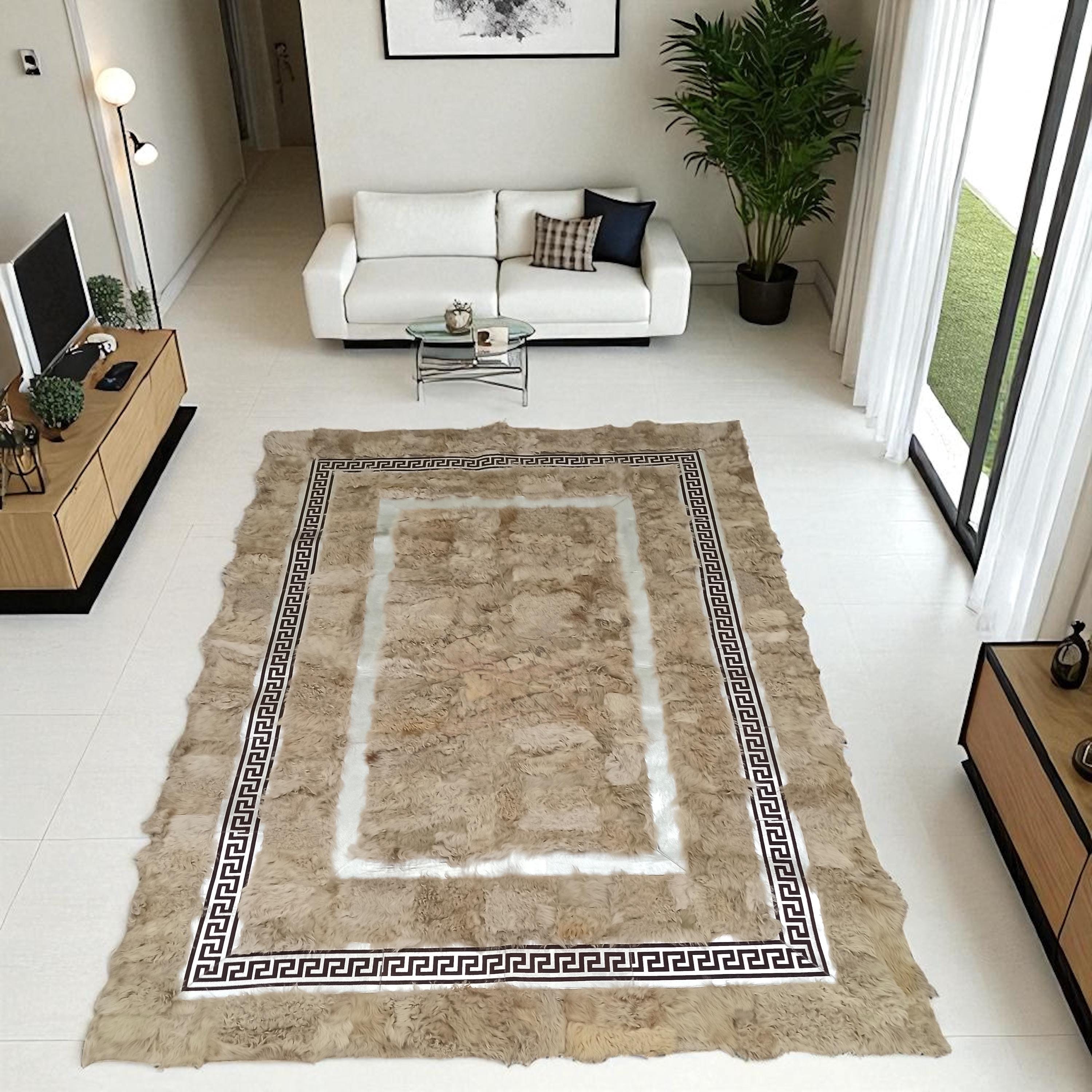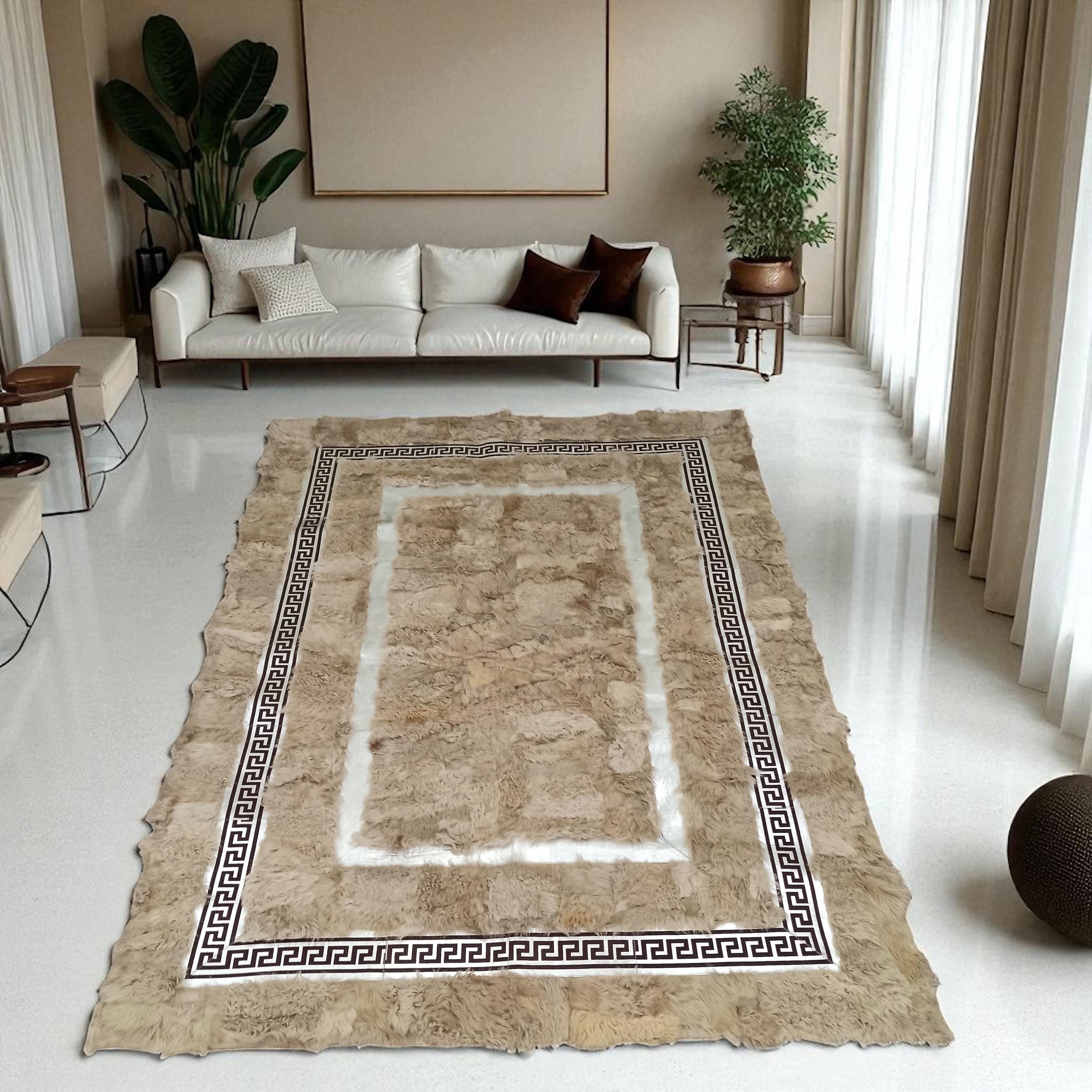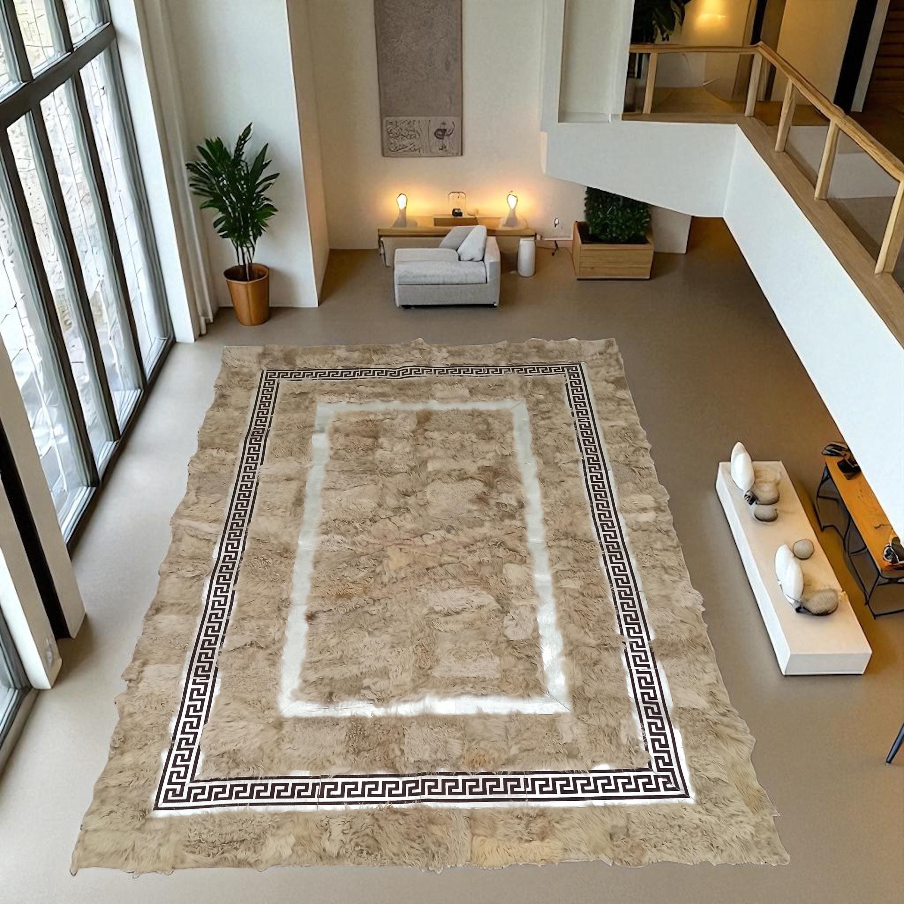 Bu özel tasarım Toskana halı, benzersiz görünümü ve doğal kürk yüzeyi ile yaşam alanlarınıza sıcaklık katar. Her biri el işçiliğiyle özenle üretilmiştir.