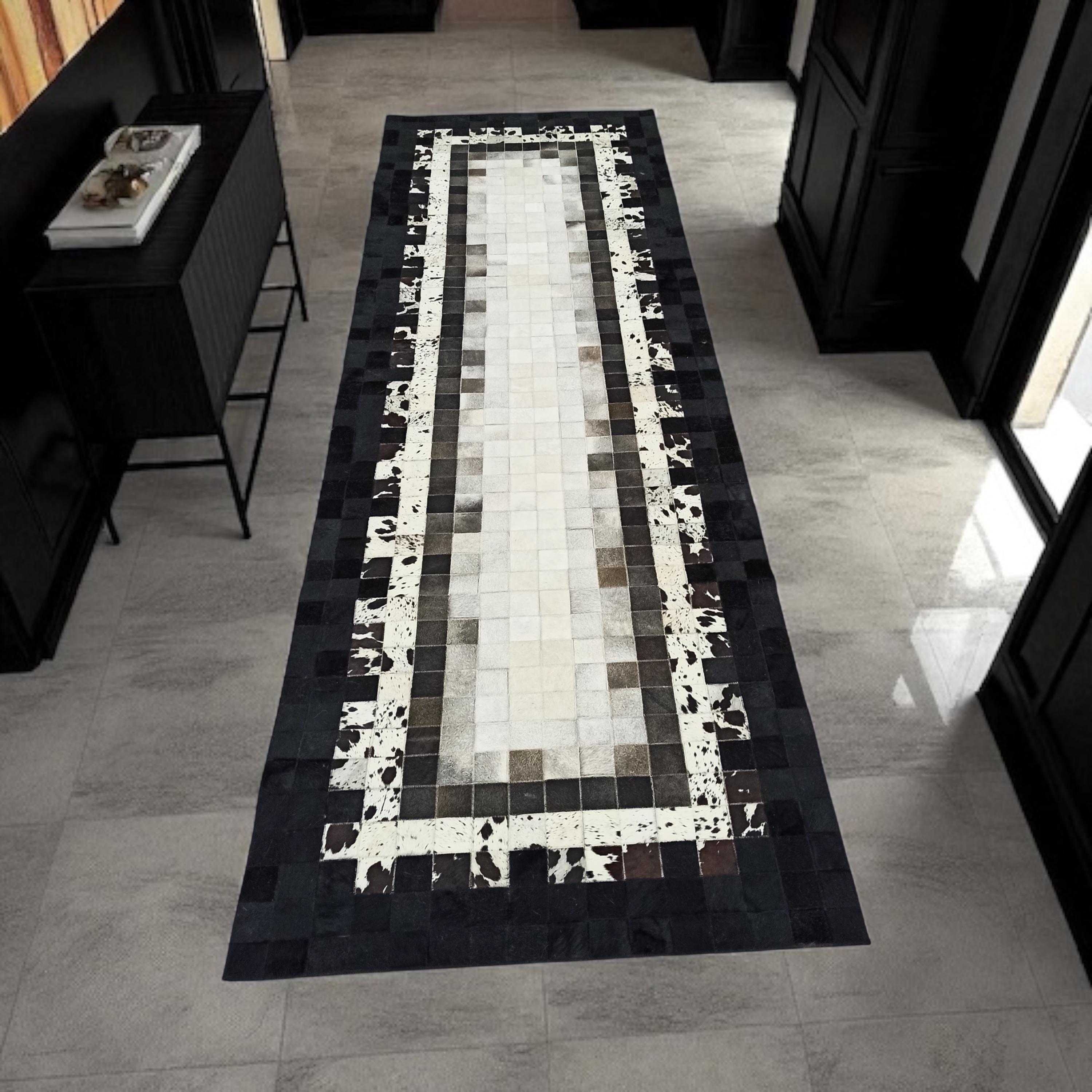 Dana Derisi Patchwork Yolluk – Siyah Beyaz Renkli Şık Antre Halısı