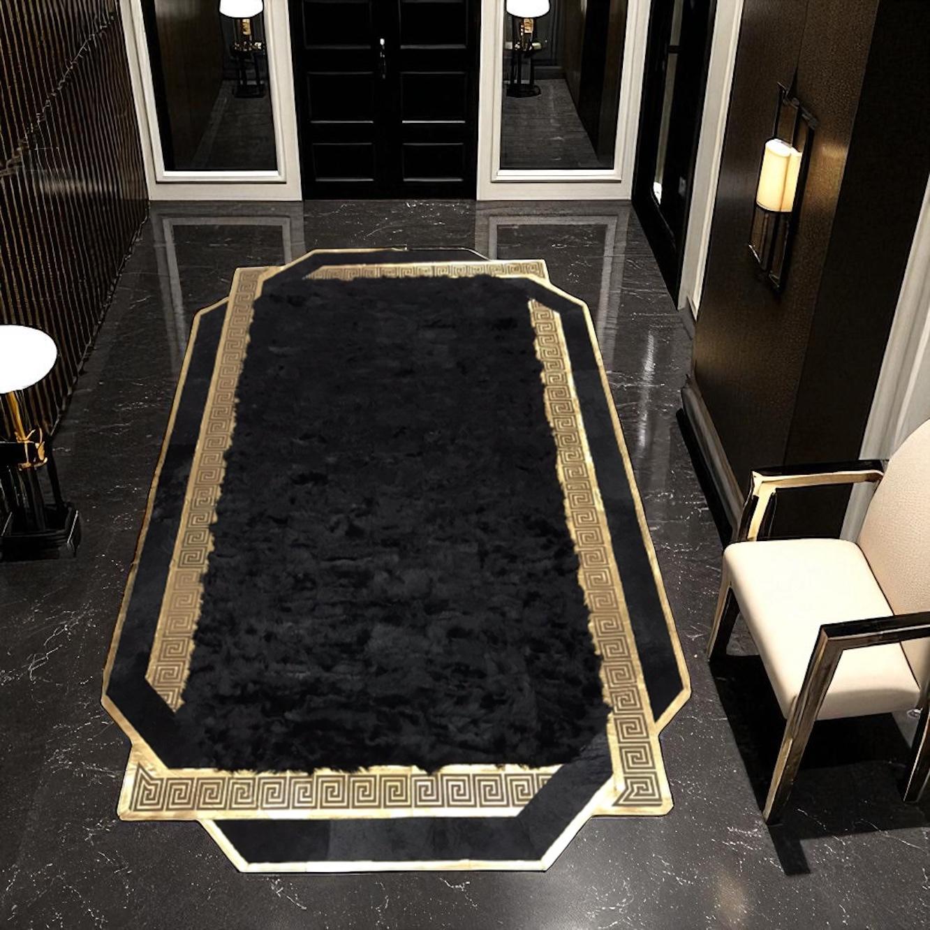 Lüks Siyah Toskana Koyun Derisi Halı, Altın Kenarlı