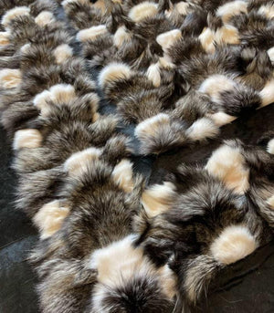 Siyah Beyaz ve Gri Tilki Kürkü Lüks Halı yumuşak dokusu ve dikkat çekici renk geçişleriyle yaşam alanlarınıza lüks bir dokunuş katar. Özenle seçilmiş gerçek tilki kürkünden üretilmiştir.