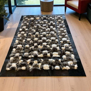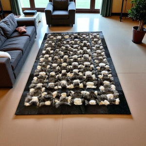 Siyah Beyaz Gri Üç Renk Tilki Kürkü Halı – El Yapımı Doğal Kürk Lüks Salon Halısı
