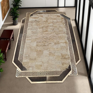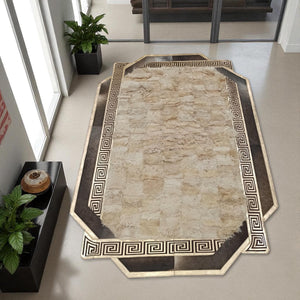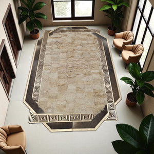 Altın Bordürlü Bej Renkli Dikdörtgen Toskana Halı – El Yapımı Şık Salon Halısı