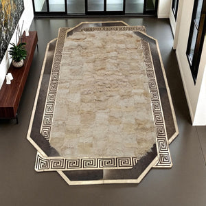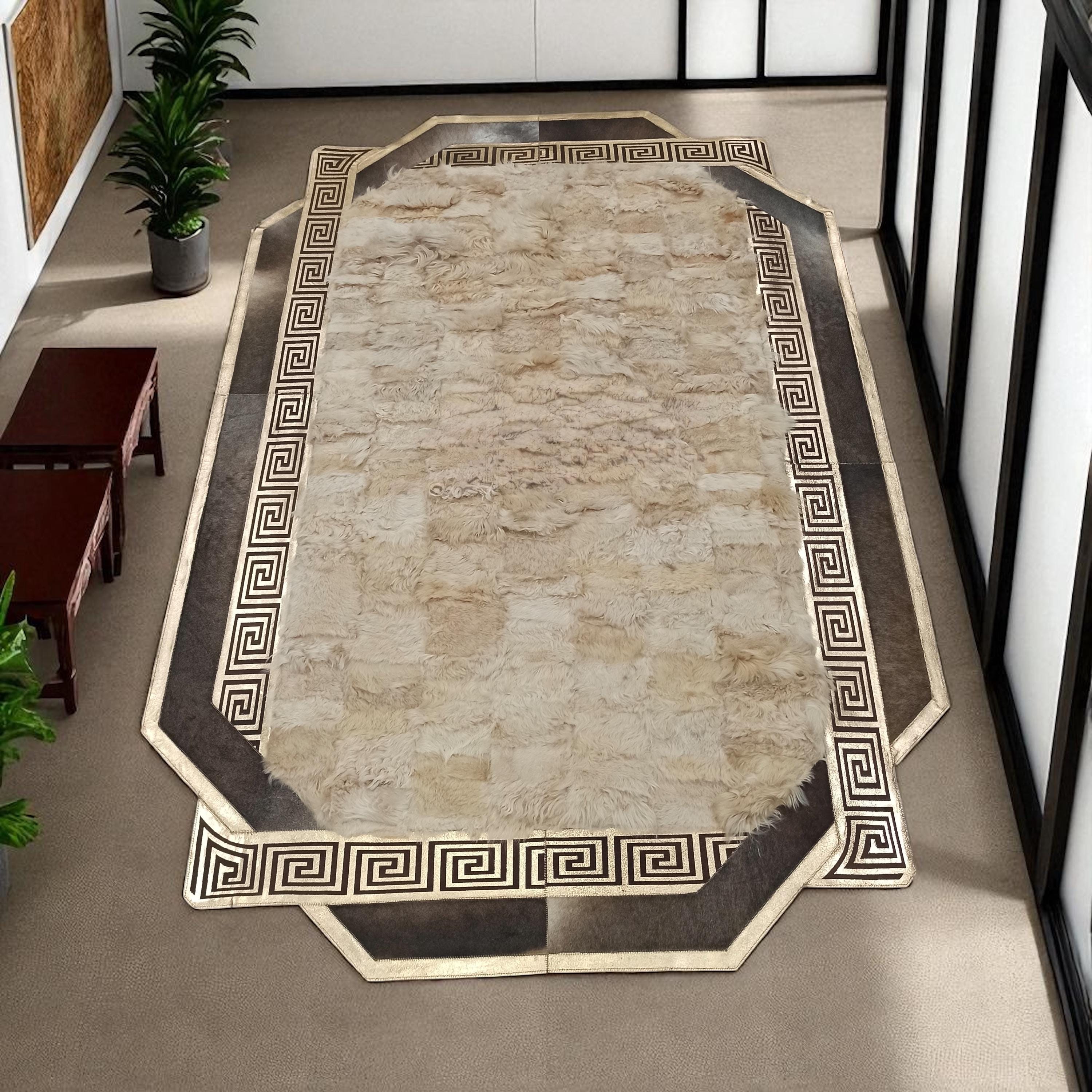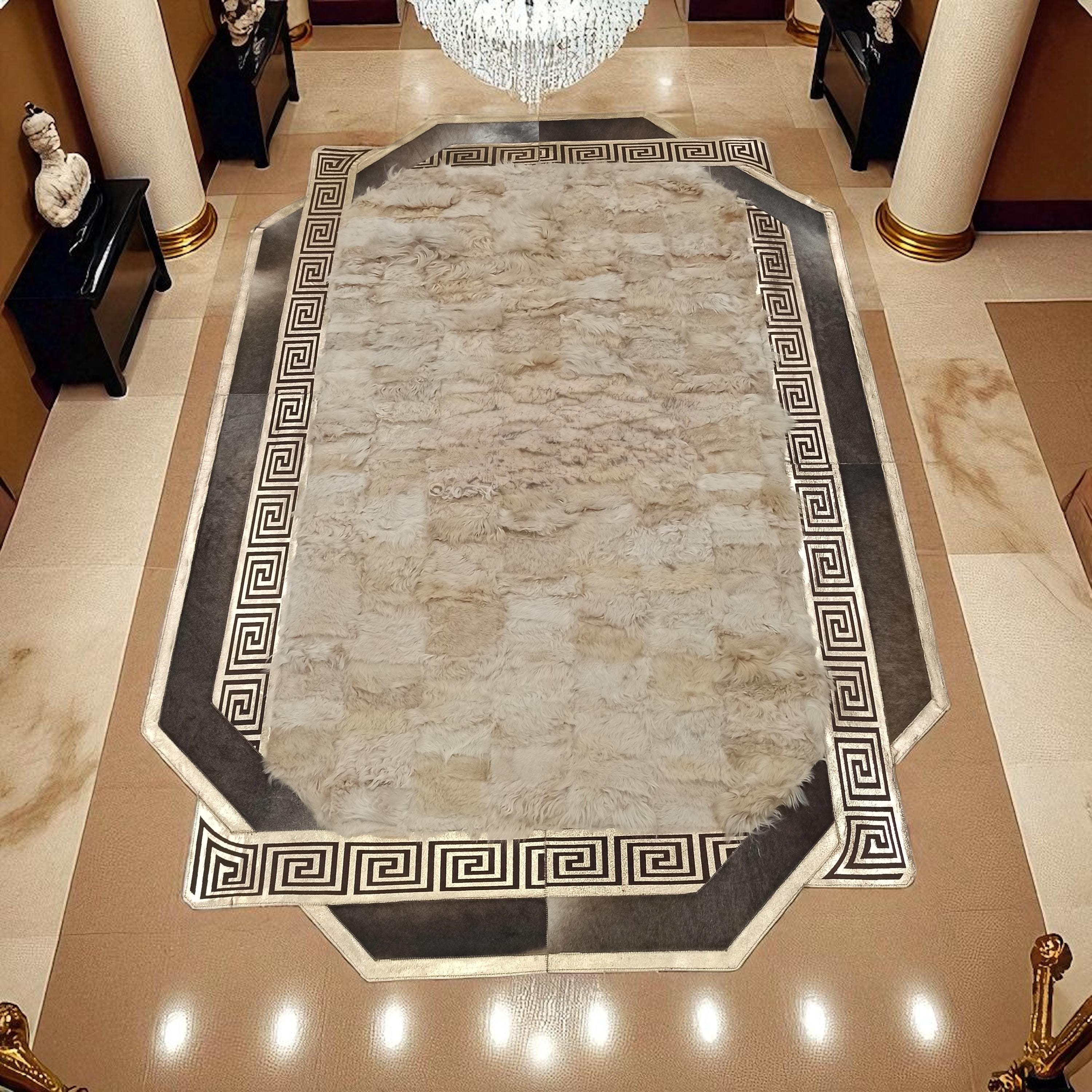 Bu bej Toskana halı, doğal kürk yüzeyiyle yaşam alanlarınıza sıcaklık katar. El yapımıdır.