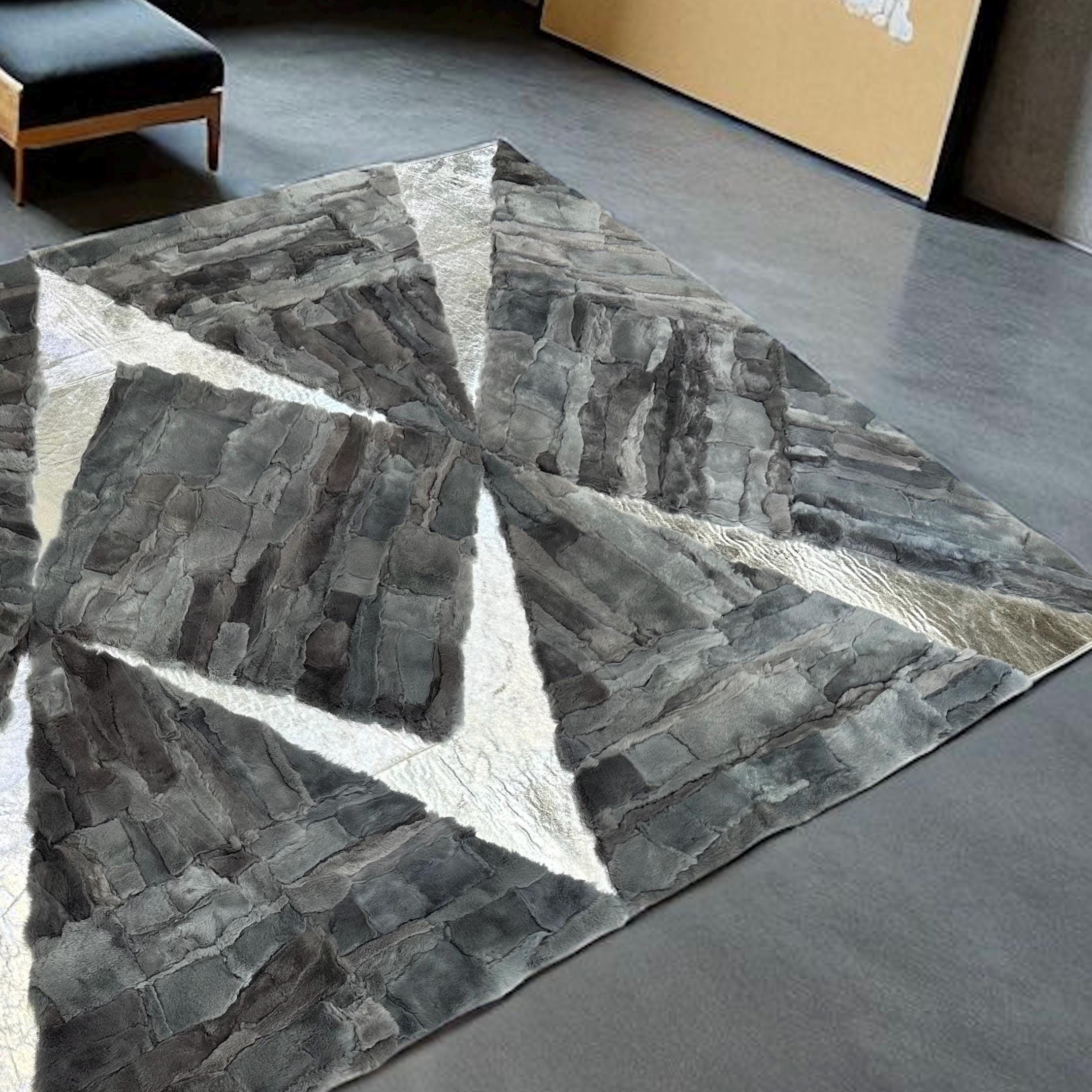 Gri Rex Tavşan Halısı - Şık Gümüş Detaylı