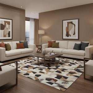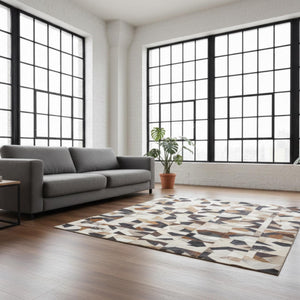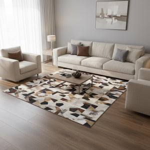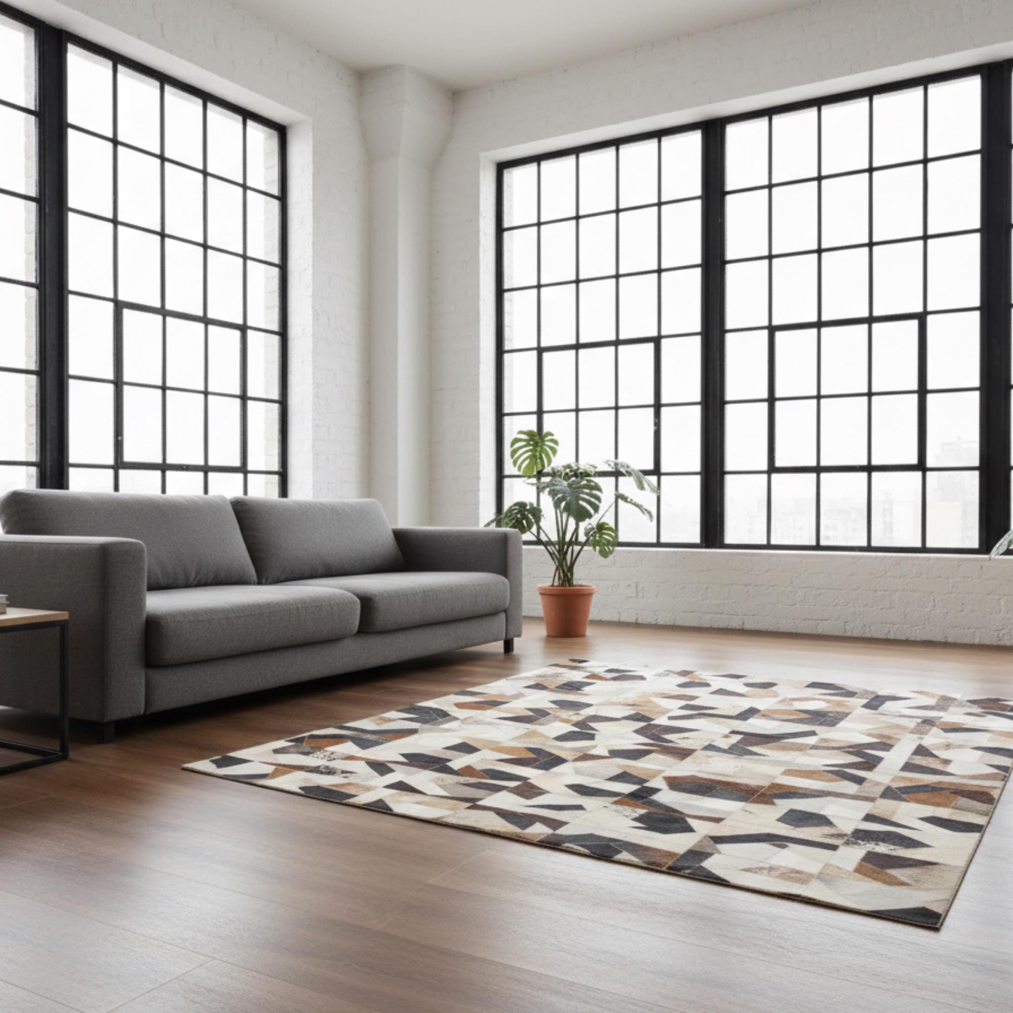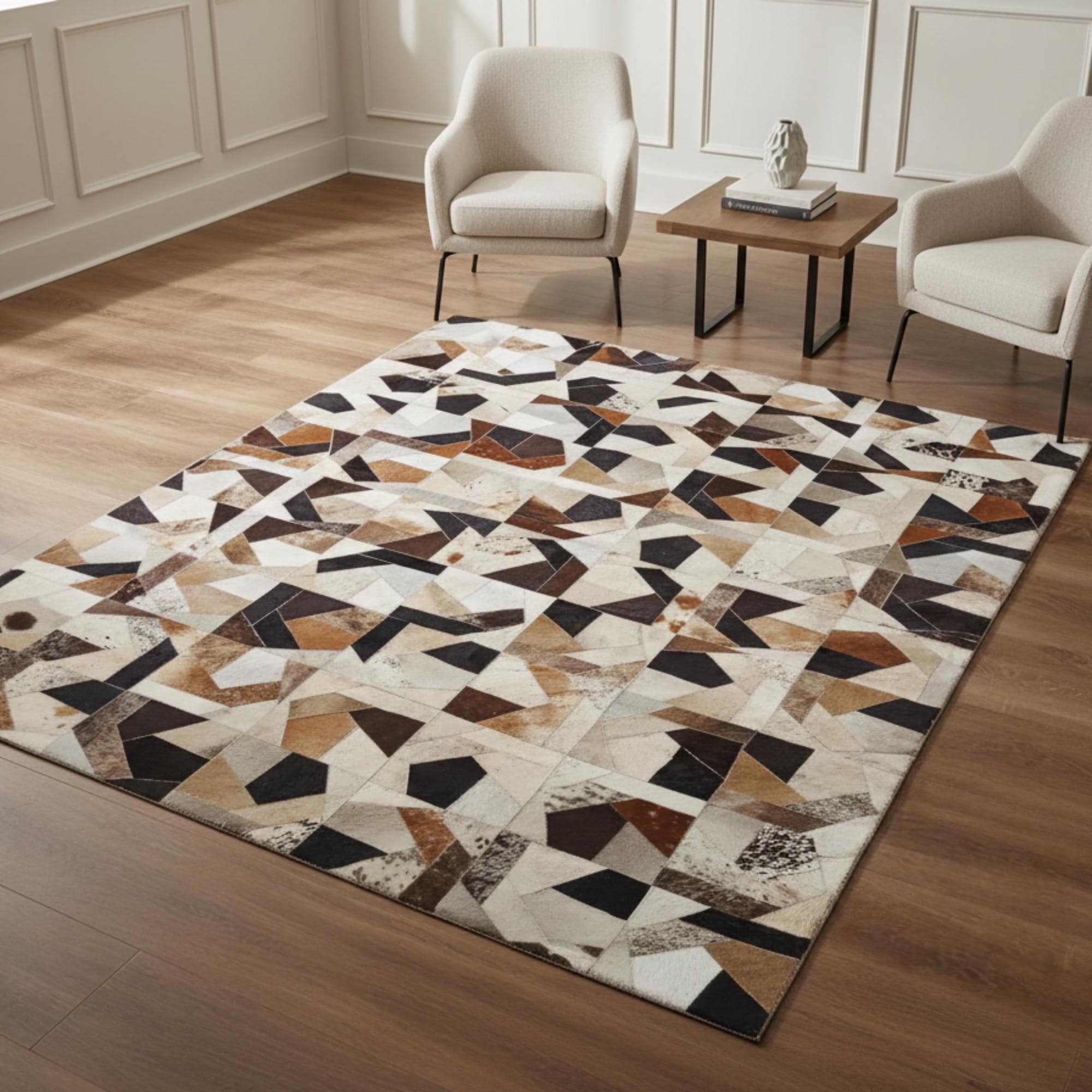 Modern Patchwork Cowhide Rug, Geometric Ombre Design