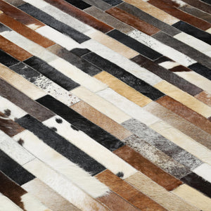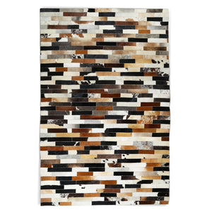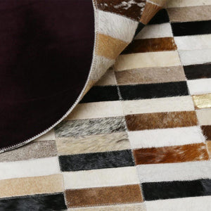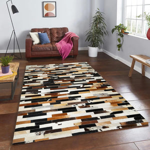 Çok Renkli Dana Derisi Patchwork Halı – Siyah Kahverengi Bej El Yapımı Hakiki Deri Şık Salon Halısı