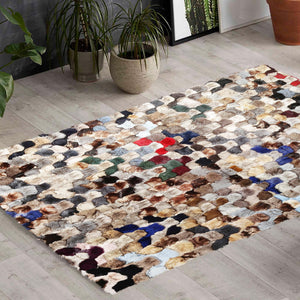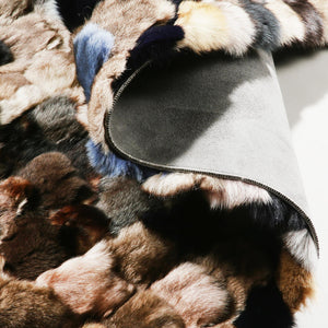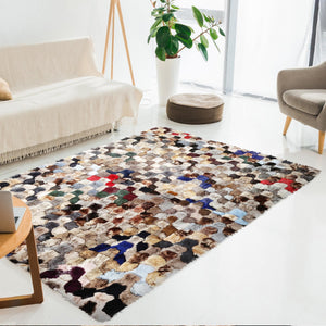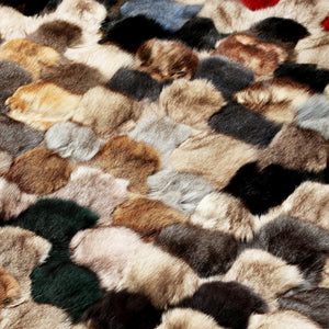 Tilki Kürkü Çok Renkli Kare Desenli Halı – El Yapımı Doğal Kürk Salon Halısı