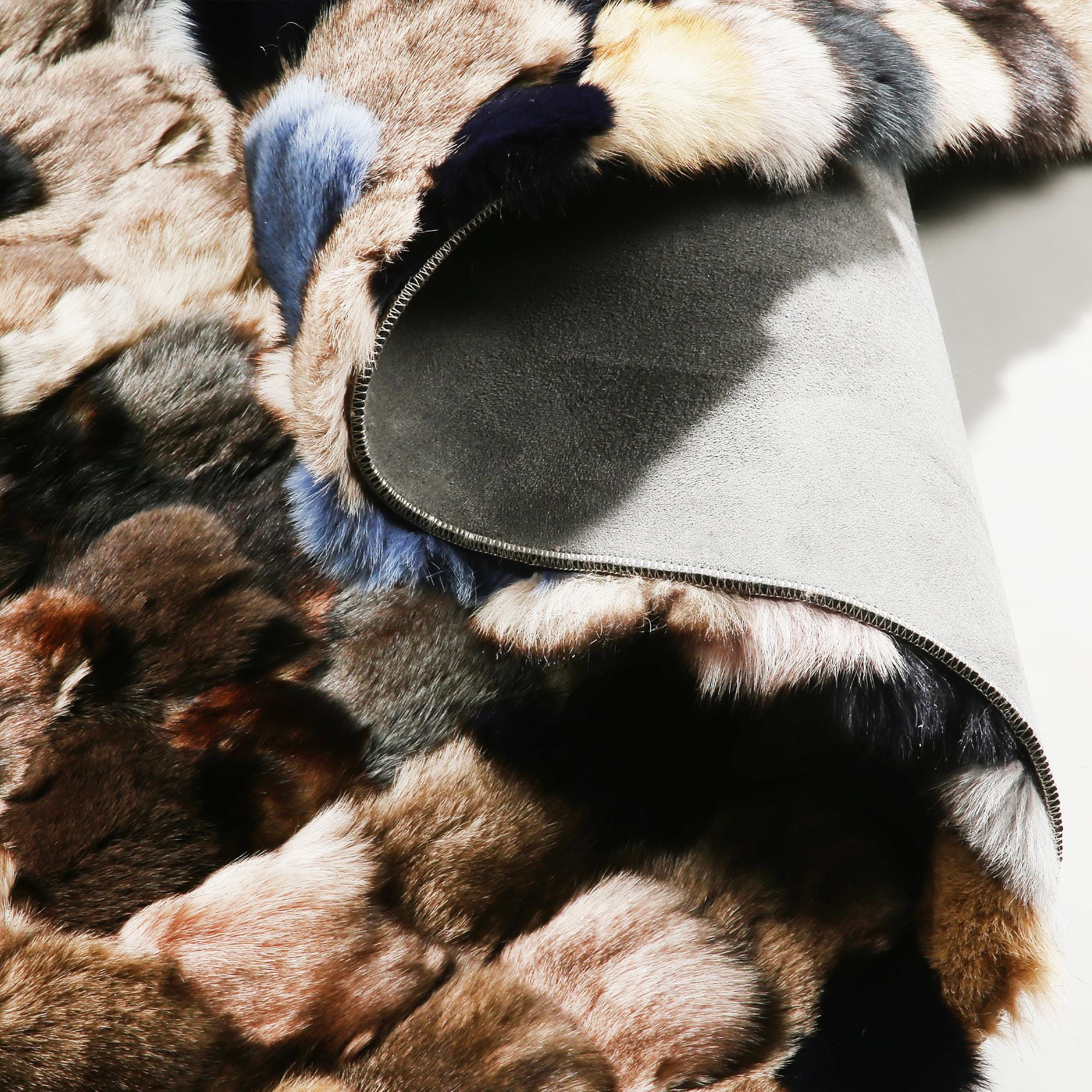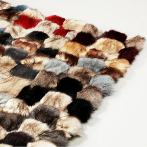 Çok Renkli Kare Desenli Tilki Kürkü Halı yumuşak dokusu ve dikkat çekici renk geçişleriyle yaşam alanlarınıza lüks bir dokunuş katar. Özenle seçilmiş gerçek tilki kürkünden üretilmiştir.