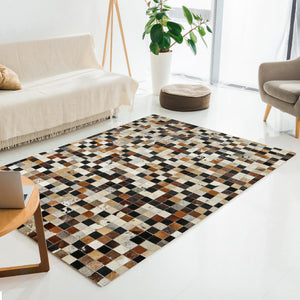 Kahverengi Tonlarda El Yapımı Dana Derisi Halı