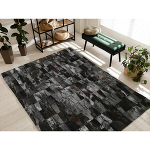 Doğal Siyah Gerçek Kürk Patchwork Halı