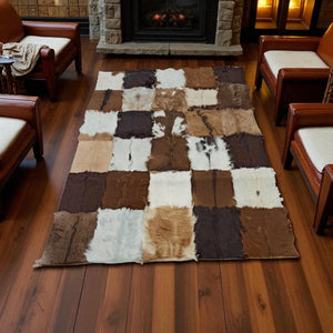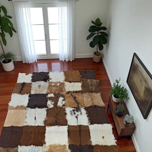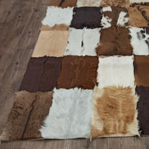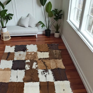 Kahverengi ve Beyaz Oğlak Derisi Patchwork Halı