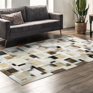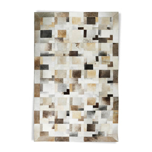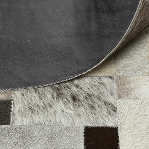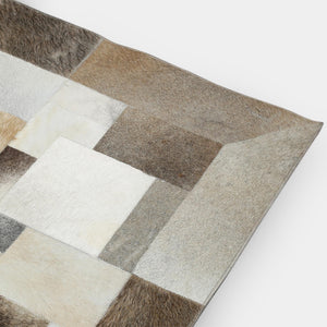 Bej Gri Doğal Dana Derisi Patchwork Halı – El Yapımı Hakiki Deri Modern Salon Halısı