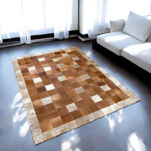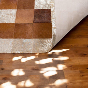 Kahverengi & doğal tonlara sahip bu dana derisi halı, doğal dokusu ve şık görünümüyle dikkat çeker.