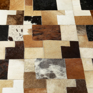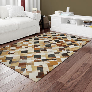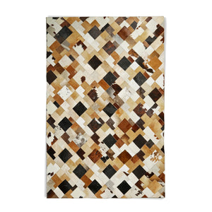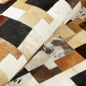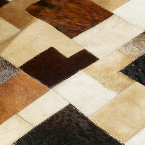 Doğal Kahve Desenli Dana Derisi Patchwork Halı – El Dokuma Gerçek Deri Şık Koridor Halısı