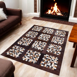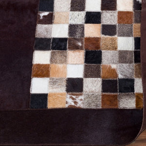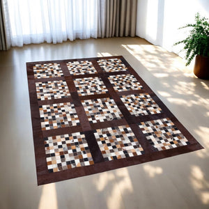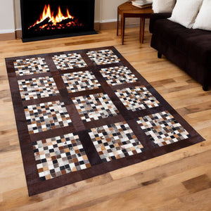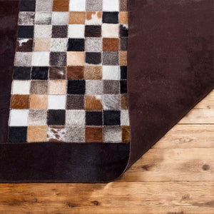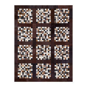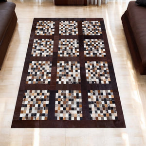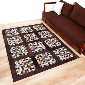 Kare Desenli Doğal Dana Derisi Patchwork Halı