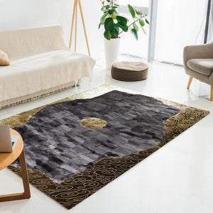 Gri ve Altın Desenli Orta Motifli Gerçek Toskana Derisi Lüks Salon Halısı