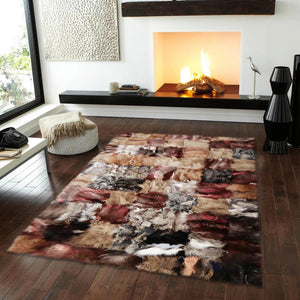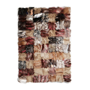 Çok Renkli Patchwork Tilki Kürkü Halı – El Yapımı Doğal Kürk Salon Halısı