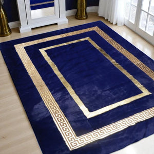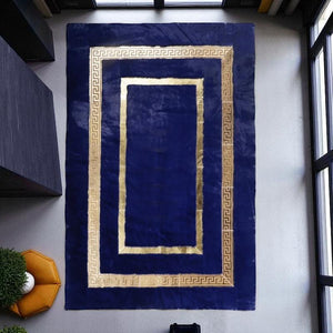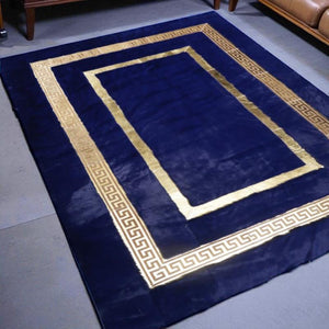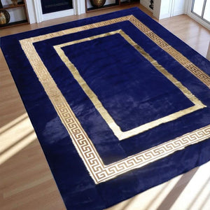 Lacivert Altın Bordürlü Peluş Halı - Yumuşak ve Şık Salon Halısı
