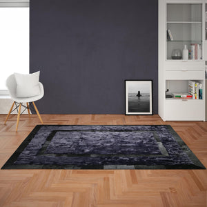 Siyah Lacivert Peluş Halı – Modern Dikdörtgen Yumuşak Halı, El Yapımı Lüks Salon Halısı, Dekoratif Peluş Halı