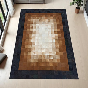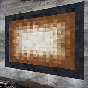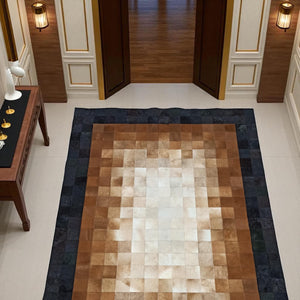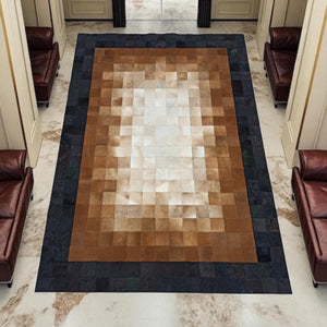 El Yapımı Dana Derisi Patchwork Halı – Kahverengi Tonlarda Doğal Ortam Halısı