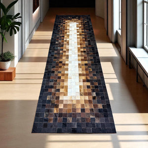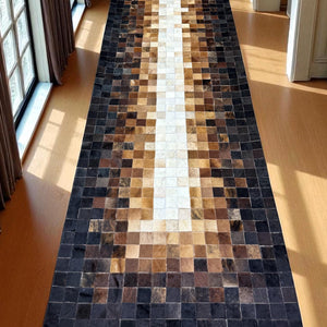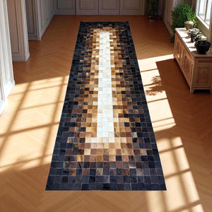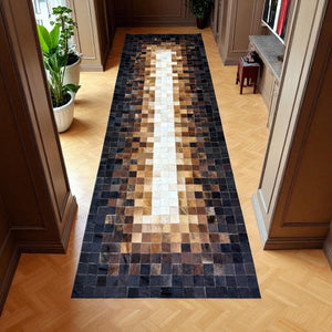 El Yapımı Dana Derisi Halı – Patchwork Desenli Yolluk Şık Giriş Halısı