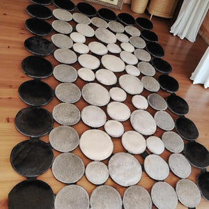 Siyah Gri Daire Desenli Dana Derisi Halı - Yolluk Halı