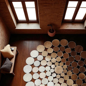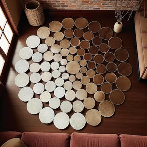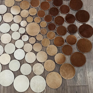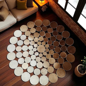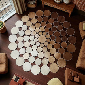Kahverengi Beyaz Puantiyeli Yuvarlak Dana Derisi Halı