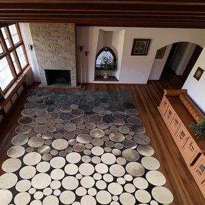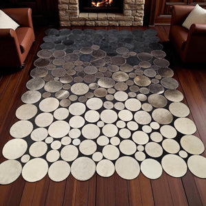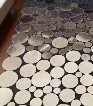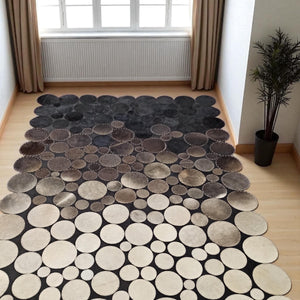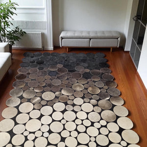 Siyah Beyaz Geçişli Puantiyeli Dana Derisi Halı - El Yapımı Antre Halısı