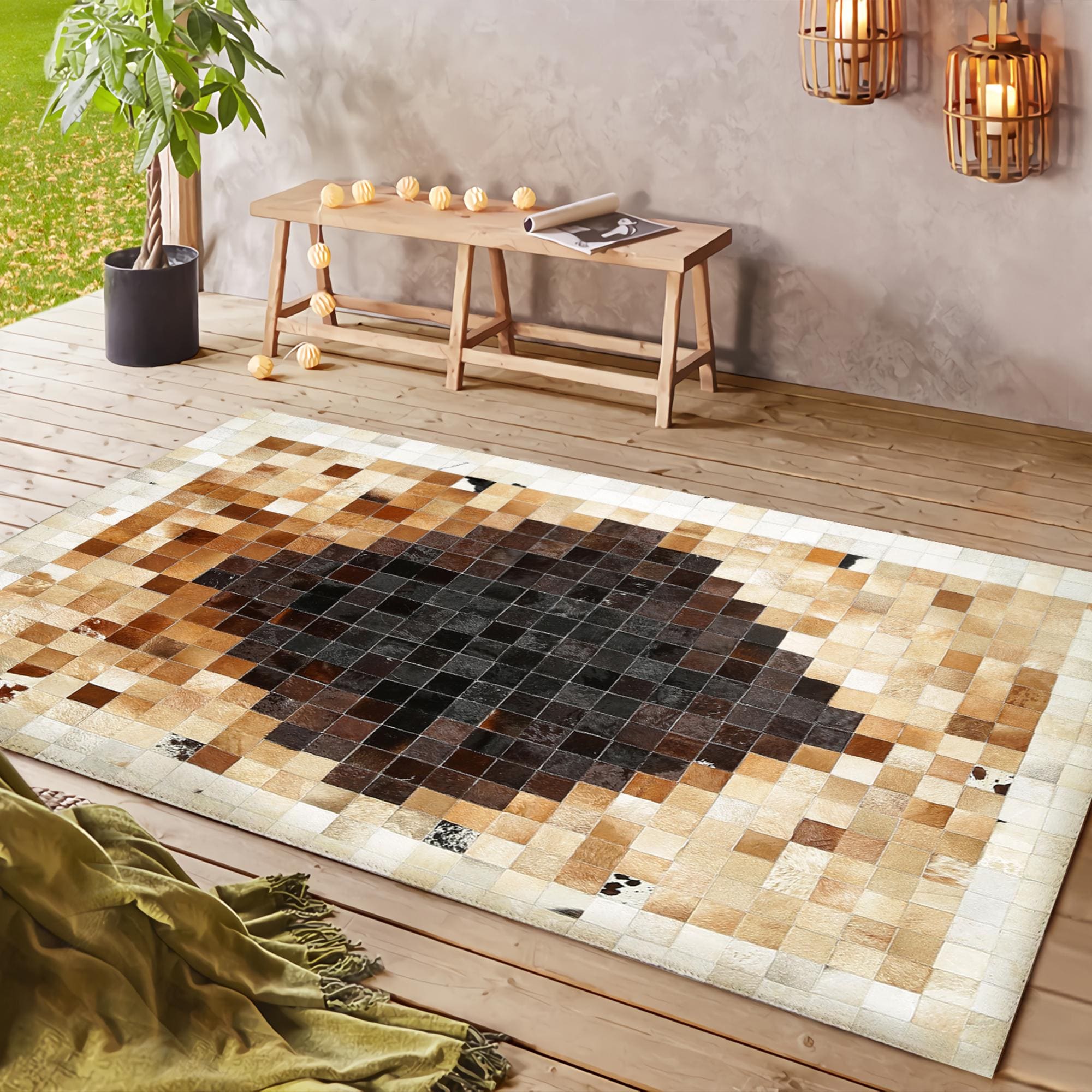 Kahverengi & bej tonlara sahip bu dana derisi halı, doğal dokusu ve şık görünümüyle dikkat çeker.