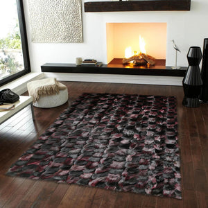 Kırmızı Siyah Tilki Kürkü Halı – El Yapımı Doğal Kürk Salon Halısı