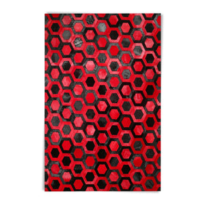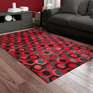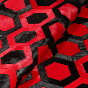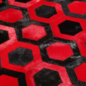 Siyah Kırmızı Doğal Dana Derisi Patchwork Halı – El Dokuma Hakiki Deri Modern Salon Halısı