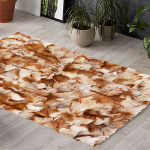 El Yapımı Kahverengi ve Krem Tilki Kürkü Halı