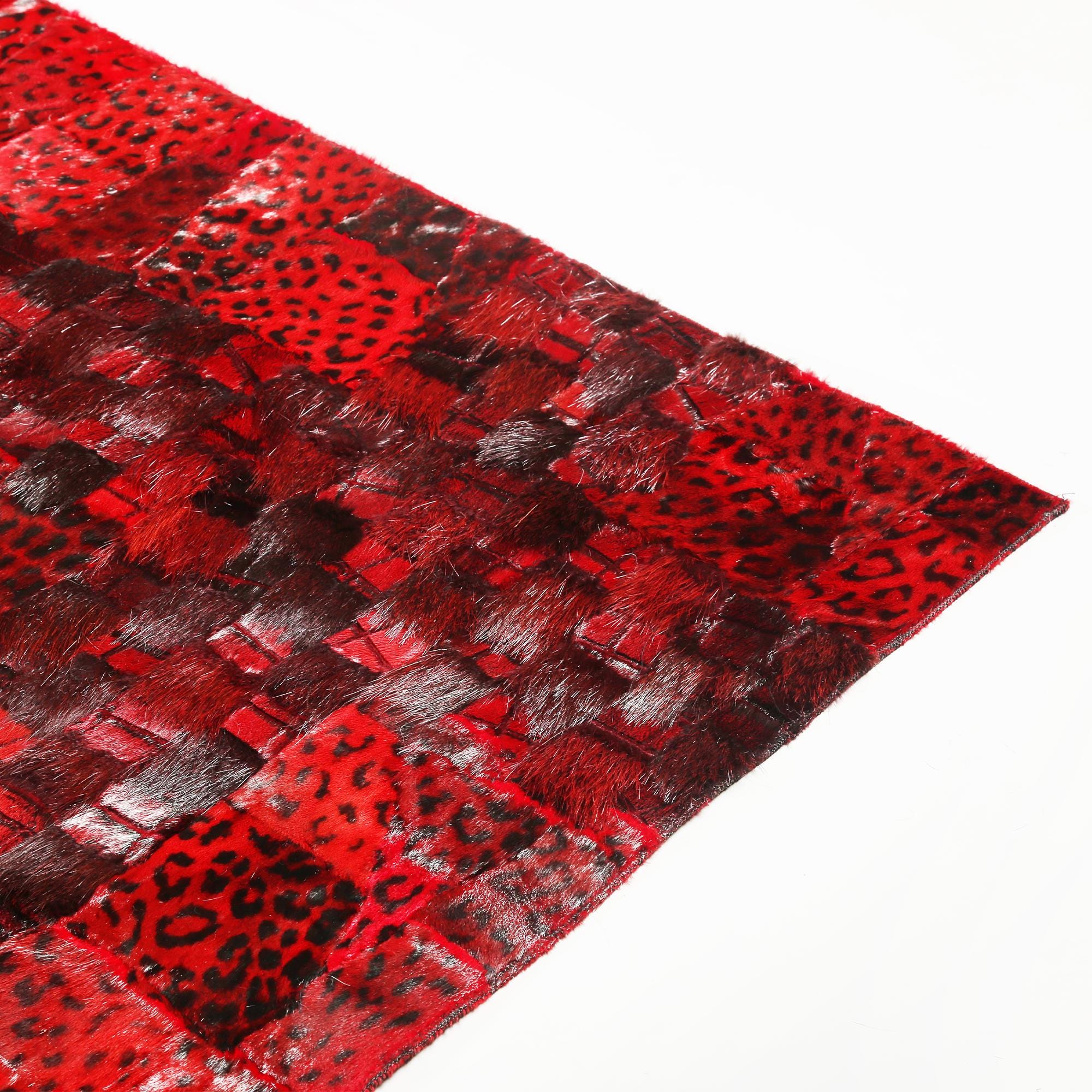 Kırmızı Leopar Desenli Gerçek Deri Patchwork Halı