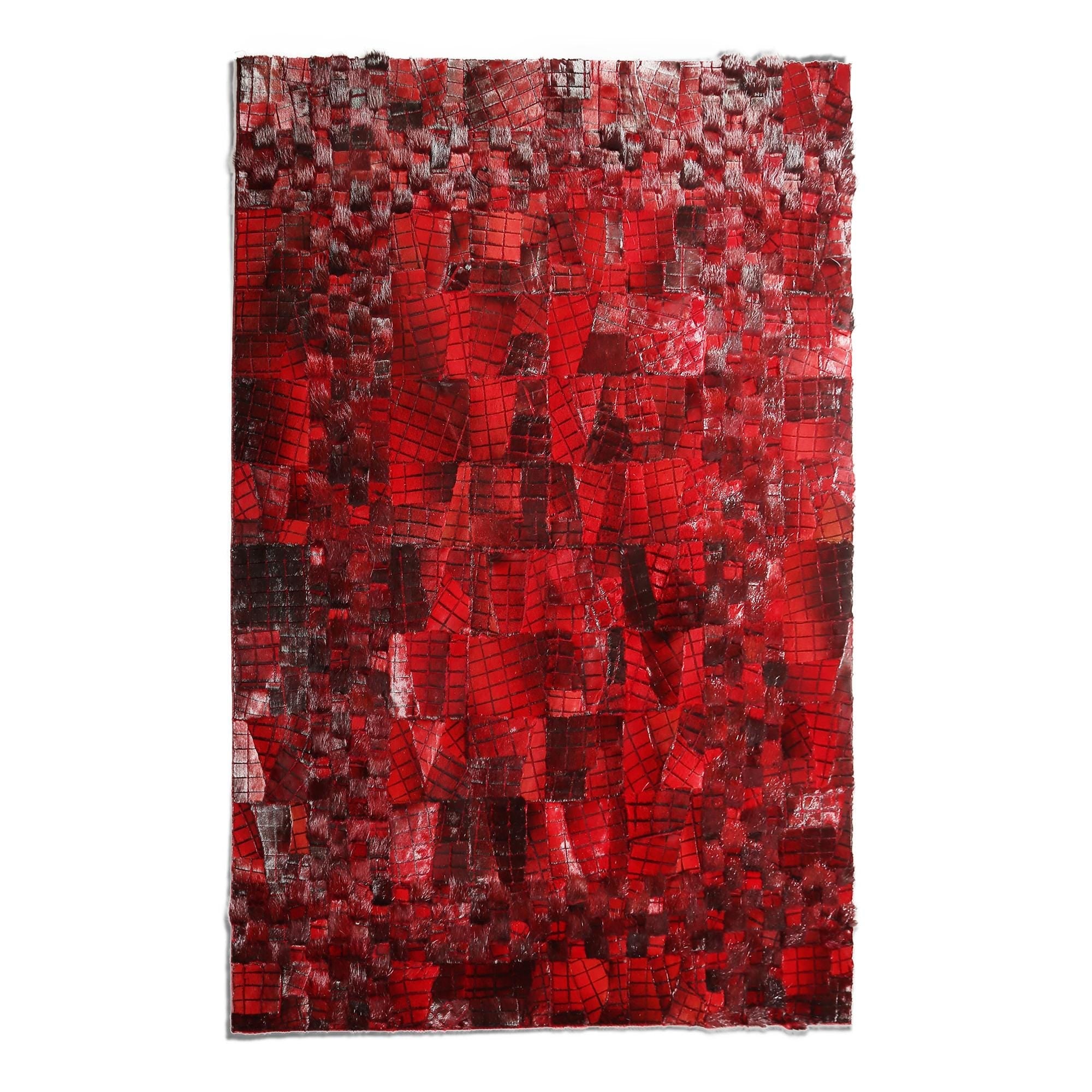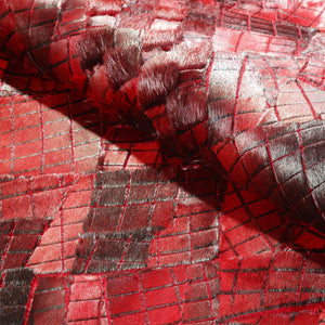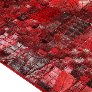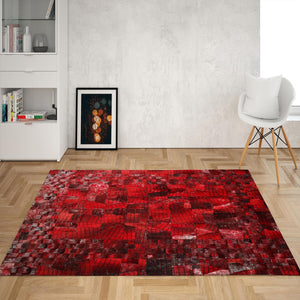 Kırmızı Kare Desenli Gerçek Deri Halı